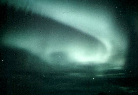 雲が出てきてしまいましたが、まだまだオーロラは複雑に形を変えてました。