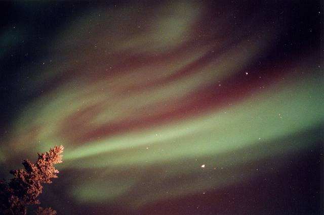 カメラ :キヤノン F1 20mm f2.8 開放 フィルム :コニカ NEW センチュリア800 (ISO 800) 露出 :約20秒 撮影日時 :2002年1月19日20時15分頃(現地時刻=世界時-2=日本時-7) 撮影・著作:怪鳥