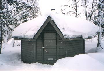![]() 雪に埋もれそうなオーロラ観測小屋(コタ) |