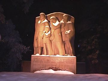 駅からは教会を目指して、雪の中を歩いてみました。途中にはこのような碑がたくさん建っていたのですが、戦没者公園の慰霊碑だったようです。雪に埋もれながら、いくつかまわってみました。