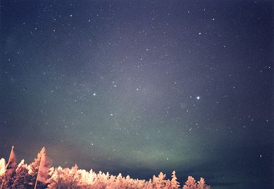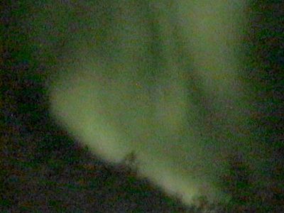 写真はこの頃、北の空に出たぼわーっとした淡いオーロラ。まん中右側の明るい星がベガで、やや左側がデネブです。