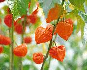 いま、ほおずきのことを「酸漿」と書きましたが、ほかに鬼灯とも書きます。「灯」(ともしび)という字は、ほおずきの実の赤い色や丸い形をよく表していますよね。では、「鬼」という字はどこからきたのでしょうか。はっきりしたことはわかりませんが、ほおずきの鉢をお盆のころ仏壇に飾ったり、精霊むかえにほおずき提灯(ちょうちん)を使ったりしたことから、この植物になにか恐ろしいイメージを持ったのかもしれません。地方によっては、ほおずきを庭に植えると病人や死人が出るとして、忌み嫌うところもあります。