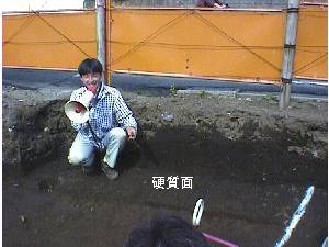 古代の道はお皿のようにくぼんでいて、この発掘では底の部分まで削ってあるの、今は幅2mほどです。