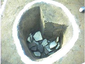もう片方の小さい穴には、底に瓦がひかれていました。