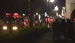 通りには何台もの消防車とパトカーが並びました。