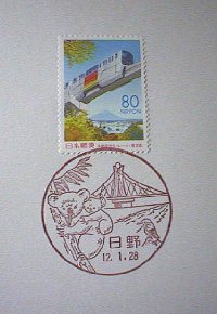 多摩モノレール「高幡不動駅」で売っていた記念切手とスタンプ。