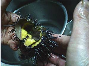 母がウニを開いて取り出します。中味はけっこうグロいのね(^^;