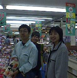 写真は、食品売り場で鍋の材料を買っているところ。