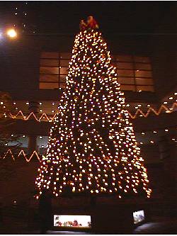 すり鉢状の広場にある、背の高いクリスマスツリー。