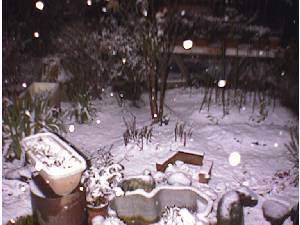 最初に庭の土を白くした雪は、やがて地面のアスファルトも