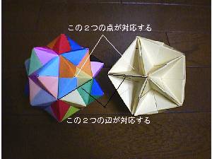 左のもの(折り紙)は凸の形で、右のものは凹の形です。(対処な点が出っ張っているのと、へこんでいるもの)