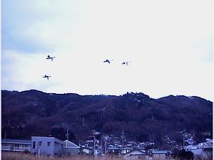 最後はきれいなV字に並んで、諏訪湖の方向へ飛んでいきました。