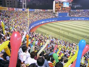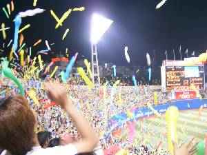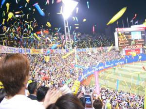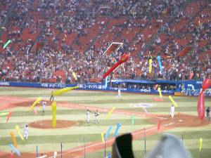 ガンガン応援中! メガホン、バンバンふってます。 7回の攻撃に向けて風船スタンバイ。