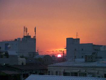 味の素スタジアムから甲州街道上にかかる歩道橋でみた日没。