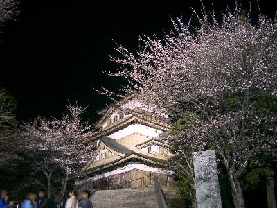 高島城公園の中にはたくさんの桜がありますが、 ちょうど城正面のライトアップされた桜が咲き始めていました。 闇夜に浮かび上がる天守閣とピンクの桜が、なかなか幽艶です。 ほかにもお堀に面した桜や、しだれ桜がきれいに咲いていました。