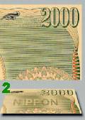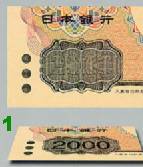 お札を作っているところは、大蔵省印刷局です。2千円札は左のようなデザインで、上にあるのが表、下にあるのが裏です。