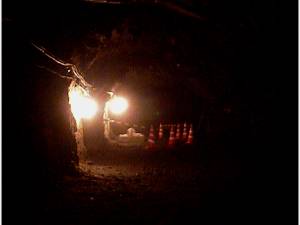 灯りが点々とついているのは、地震の計測器まで行くためのものです。