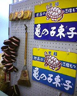 レトロな看板もかわいい「亀の子束子」。オレンジの包装が目印です。