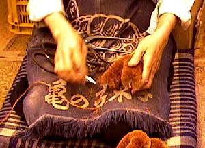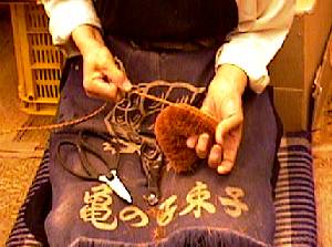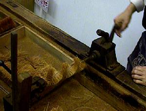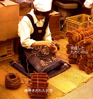 棒巻きされたたわしを、やはり手作業で仕上げる。