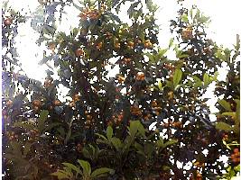 たわわに実っているビワの木。(遠いのでみにくくてすみません)