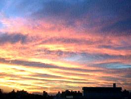▲月島へ向かう電車の中から見た美しい夕焼け。