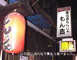 月島には本当にたくさんの店があり感心! 最初の注文は、豚肉+ベビースター+チーズです。