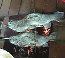 釣り上げた魚をさして、炭でバーベキューにして食べました。おいしかったです!