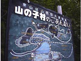山の子村は広い敷地内に山や池があります。 近所から来る2匹の犬が村のマスコット。