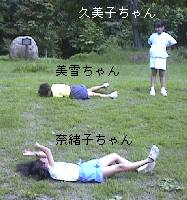 丘を転がって遊ぶ姪たち。浅い池ではいかだに乗って楽しんでいました。