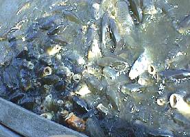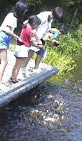 蟹ガ池の鯉にエサをあげると、びっくりするくらいたくさんの鯉が集まっていました。