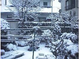 左:昨日の庭の風景。どんどん雪が降ってきました。