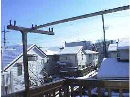 右:今日のベランダからの風景。みんなお菓子の家のように雪をかぶって真っ白です。