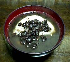二人の部屋に飾った、小さめの鏡餅で作ったおしるこ。