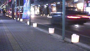 大きな氷の真ん中にキャンドルが灯る 歩道を点々と照らす