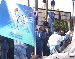 みんな旗を振りながら、聖火を見送りました。