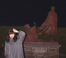 熱海の海岸にある「寛一とお宮」の像の前で、寝ぼけながら(なぜなら、飲み会から車に乗って目が覚めたら、そこは海だったのだぁ)お宮のポーズをするリトル。この後、屋台でラーメンを食べて、渚で海に入って遊びました。 熱海では、なんともう桜が咲いていました。びっくり! これはなんていう種類かしら?