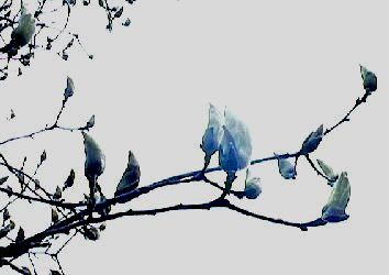 昨夜からの雨で、木蓮のつぼみは今にも咲きそうです。