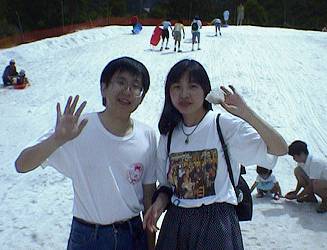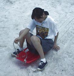 この雪山では、子供たちがソリ遊びをしていました。さっそく私もソリを借りて滑り、楽しかったです!
