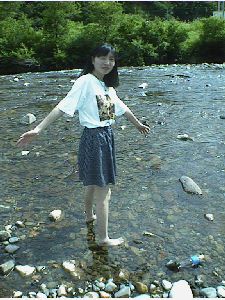 奥只見湖にそそぐ川は、水がきれいでとても冷たかったです。水着姿で遊ぶ親子づれもいました。