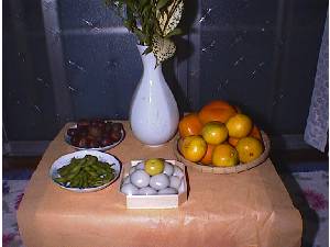 お団子のほかにも、栗や豆みかんも並べてみました。