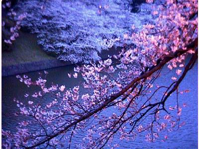 (左)堀のこちら側から垂れ下がる枝だと、土手から咲きこぼれる桜。