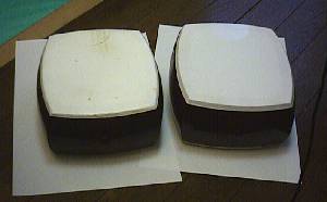 ▲よけいな分を切り取って仕上げる。 ▲左は犬の皮で作った上等なもの。右は合皮。