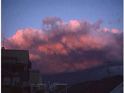 夕方なのに“東”の赤い雲。西は黒い雲でした。