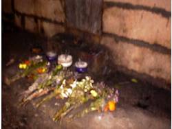 壕の中には花やお線香が並びます。