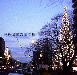 三角屋根が目印の国立駅と、立ち並ぶイルミネーション。