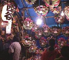 ビルの中にぽつんと置き忘れたような空間に、お祭りだけを切り取って貼ったみたいな不思議な雰囲気でした。