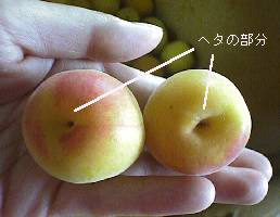 梅干しに適しているのは、和歌山産の南高梅(なんこうばい)です。梅酒用などの青い梅とちがい、ちょっと赤く色づいているのが特徴です。