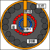 花火の玉を半分にわると、図のようになっています。