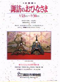 リトルの生まれ育った諏訪市の諏訪大社上社近くにある諏訪市博物館では、2月23日(日)から3月30日(日)まで「諏訪のおひなさま」という企画展が行われています。
