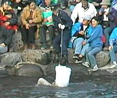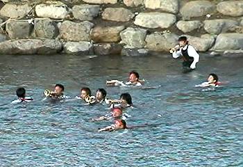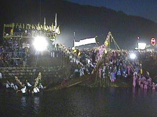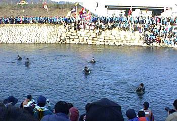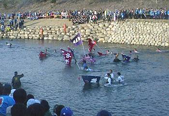 ついでにラッパ隊まで川を渡ってしまいました。泳ぎながらラッパを吹いて、観客から歓声を浴びてました。